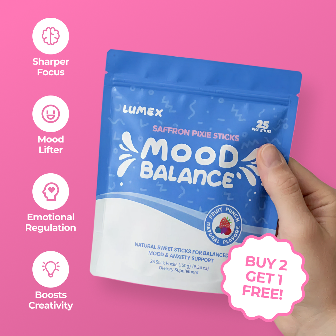 Transform you and your little one's day from gloomy to sunny with Mood Magic - our unique blend of saffron, L-tryptophan, and magnesium in tasty pixie stick. It offers a natural, side-effect-free option for mood support, anxiety control, and decreased anxiety. Perfect for daily emotional balance and focus, this is the friendly boost that'll make you shine brighter.